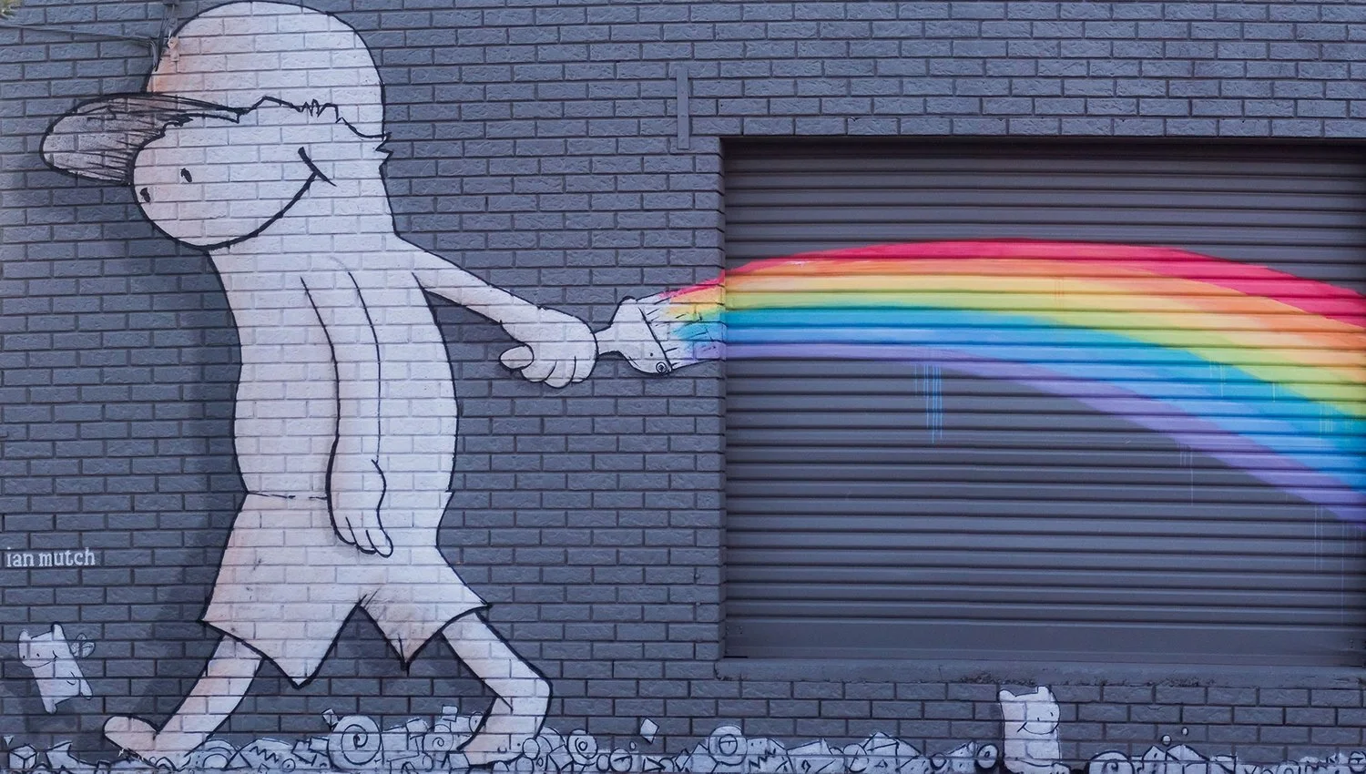 "This artwork forms part of a larger series exploring the concept of rainbows added to random life situations. The result is vibrant, fun and a light-hearted approach to everyday living.”